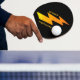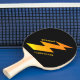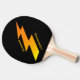 Black ping pong paddle, with graphics of a golden yellow lightening bolt and yellow text reading greased lightening. Personalise the yellow text to read what you want. Makes a great gift idea.