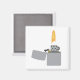 This beautifully detailed design shows a silver cigarette lighter with a large flame.