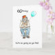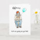 A lighthearted birthday card for a 60 year old with a grumpy old man sitting in a chair, grasping his stick and looking slightly ridiculous in a party hat: from a watercolour painting by Judy Adamson. The inside message is fully customisable and other ages can be supplied on request.