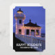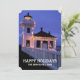 Lighthouse at Night with Christmas Lights Holiday Card