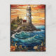 Lighthouse at Sunset Stained Glass Illustration Postcard