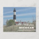 Embrace the timeless allure of the Great Lakes with this exquisite postcard featuring a striking black-and-white lighthouse standing tall against a pristine blue sky. Nestled among sun-swept dunes and swaying beach grass, this coastal landmark perfectly captures the rugged elegance and peaceful isolation of Michigan's historic shorelines. Printed on high-quality, durable cardstock with a crisp, professional finish, it is the ideal choice for travelers wanting to share a piece of their journey or for collectors who appreciate maritime heritage. This card doesn't just send a message; it delivers a serene moment of lakeside wonder that will stand out in any collection or mailbox.