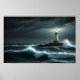 Lighthouse Landscape Coastal Ocean Waves Night Sea Poster