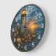 lighthouse nautical decor sunset coastal beach house accessory, seaside wall art, maritime style clock, ocean themed decor, relaxing sunset timepiece, nautical gift idea, lighthouse at dusk clock