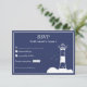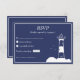 An elegant & simple navy blue RSVP card with an illustration of a lighthouse for a marine and nautical theme wedding! Just change information and send it to your guests!
