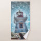 Lighthouse ocean nautical blue rustic coastal vintage printed design bath towel set. Turquoise photo art of Killarney, Ontario Canada. Rocks in foreground, old red and white lighthouse with texture sky. Beautiful retro style bathroom decor. Decorative seaside shoreline image. Look for matching products in my store collection. Image copyright Marg Seregelyi Photography.
