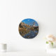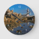 The clock did not take as long to arrive as I thought it might and was extremely well packaged. I didn't do the measurements so I didn't realize it is a little smaller than the average clock but that does not matter (just make sure you check if that's important to you).It is really nifty! It seems very solid and well made not flimsy at all. It has been going well and has kept good time in its few weeks on my wall. Nice product. Gets noticed too! Nicer in real life than the picture but true to the picture