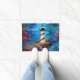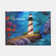 Beautiful red and white striped Lighthouse on a rocky outcropping