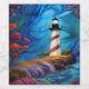 Beautiful red and white striped Lighthouse on a rocky outcropping