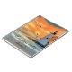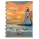 Personalised notebook with a beautiful painting of a white lighthouse, sitting on the coastline with a brilliant sunset in the background. Text, which is fully customisable, says, "Let your light shine."