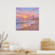 Artwork of a lighthouse at the shoreline of a sunset ocean. This pastel impressionistic style artwork captures the serene beauty of a coastal sunset, where the sky and sea blend into a soft wash of pinks, purples, and peach. Featuring a lighthouse watching over rolling waves and sandy dunes, this piece evokes the peaceful feeling of a quiet evening stroll along the shoreline. The luminous light reflecting on the wet sand adds a touch of realism to the scene. It is the perfect addition to a bedroom, bathroom, or any room where you want to create a calm, restorative retreat.