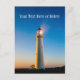 Send a note in style with this beautiful nautical postcard. This design features a gorgeous white lighthouse in the twilight hours with stars visible in the darkening blue sky overhead. The lighthouse on the beach emits a warm glow to the east to guide ships home safely. The reverse side of the card is a default light blue. There is a spot at the top to Personalise the card with your own message in white print. Just hit the Personalise button to edit or delete the text, or hit the Customise button to change the font, text colour, or reverse side colour if you wish. Makes a great gift or decoration! Great for lighthouse, ships, beach and sea lovers, and fans of nautical or ocean themed art. This design can be transferred to any item in the Zazzle marketplace.