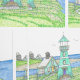 Hand Drawn Imaginary Lighthouse Turqoise Wallpaper