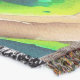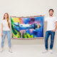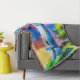 A quality printed throw has its advantages. This is a much finer weave throw than its loopier cousins, and though lighter, it is worth the investment for custom room accessorizing. The back is much prettier than the typical brown, and the fringe on the long sides very vivid, the selvage nicely done. Before photographing, I washed the throw in cold water, delicate, with a thicker woven throw the same size. On tumble dry low, this throw was dry in half the time as the other. This is a very practical quality if you use throws for furniture covers or to wrap up in frequently. The sleekness of the fabric makes it a great layer for accenting or protecting without the feeling of sitting on too much stuff. Perfect for napping or when you feel a light chill coming on. The color printing is beautiful and on this fabric, matched the design and color of my Photoshop image. This is an advantage for blending room fabrics and colors. The fringe on the short sides prints the colors from the design image and therefore varies from the side fringe. I streaked a white fractal line through the plaid pattern to give the illusion of weaving. This printed as crisp as an illusory thread, and put some white in the short side fringe, showing another advantage of print vs loomed- for artistic purposes, line lines, detail, and color integrity can be planned and preserved. My loomed throws have color limitations and more of a needlepoint texture. Print throws reproduce an exact image. The throw felt a little stiff straight out of the package, but this went away in the first delicate wash. Of course I searched the wash water for ink or bleeding and there was none.