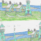 Hand Drawn Lighthouse Wallcovering; Turqoise