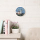 Bright lighthouse with wave adds a cheery nautical accent to wall clock. Lively idea for home or office decor!
