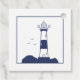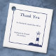 Elegant & simple Thank-You favour tag with an illustration of a lighthouse in navy blue tones for a marine and nautical theme wedding: a little attention for your guests!