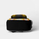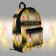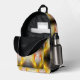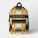 This Backpack features a fractal design in bright yellow combined with orange on striped black background - a modern, delicate, digital work. Custom text. Unique Backpack for everyone!