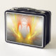 This is a standard metal lunchbox that appears to work just fine. We designed this box ourselves with an uploaded photo and custom text on the front and back. It looks absolutely beautiful except the front of the lunchbox is not centered like it shows in the photo. The print borders don't align with the inset flat part of the box where the preview photo online showed it perfectly centered in there. The back looks nice and centered though.