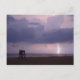 Beautiful postcard with a photo of a lightning bolt strike over the ocean in front of a lifeguard tower in Daytona Beach, FL.