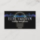 An electrical lightning zaps across space and powers up a luminous bulb. In front of the bulb is a metallic "electrician" signage. Just below this, you have your prestigious name.