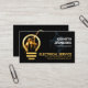 In the dark of the night, an electrical lightning powers up a gold lightbulb. You are that electrician that restores power. A blue lightning highlights your prestigious name and job title over at the top. Just below your prestigious name is the business name and contact details in faux gold.