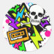 neon lightning splatter stickers with skull, lightning, paint splatter, stars, and laurina.pastina orange cassette logo