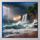 Lightning Strike Waves Beach Landscape Poster