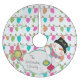 Lights Happy Snowman personalised holiday tree skirt features a white background with strings of coloured tree lights, a pink orb snowflake star, a snowman with striped scarf, and a white banner you can customise with your name. This colourful Lights Happy Snowman design holiday tree skirt makes a great gift or get one for yourself to enjoy for years to come!