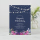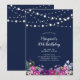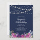 Lights & Navy Blue Floral Adult Birthday Party Invitation