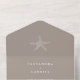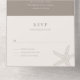 This wedding design is a perfect blend of elegance and beachy vibes. The main feature of the design is a small white starfish motif that sits gracefully in the centre of the taupe brown coloured background. The starfish motif is intricately designed and adds a touch of nature to the invitation. The typography used is classic white, which adds a touch of sophistication and ensures that the text is easy to read. The font style used is clean and modern, creating a timeless look that will never go out of fashion.