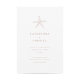 This wedding invitation design is a perfect blend of elegance and beachy vibes. The main feature of the invitation is a small white starfish motif that sits gracefully in the centre of the terracotta-coloured background. The starfish motif is intricately designed and adds a touch of nature to the invitation. The terracotta colour of the background is warm and inviting and sets the tone for an earthy beachside wedding.