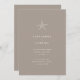 This wedding design is a perfect blend of elegance and beachy vibes. The main feature of the design is a small white starfish motif that sits gracefully in the centre of the taupe brown coloured background. The starfish motif is intricately designed and adds a touch of nature to the invitation. The typography used is classic white, which adds a touch of sophistication and ensures that the text is easy to read. The font style used is clean and modern, creating a timeless look that will never go out of fashion.