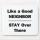 For the sarcasm lover in all of us. Check out this witty “Like a Good Neighbour Stay Over There” design on apparel, mugs, mousepads, buttons, and other unique gifts.