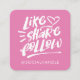 Like Share Follow Brush Script Pink Social Media Square Business Card
