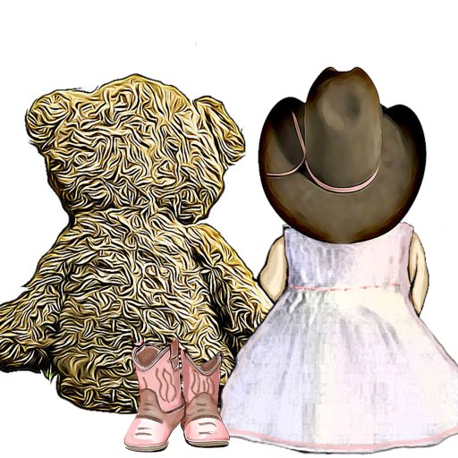 Country and western themed rustic girl's pink and brown baby shower invitation with a lil' cowgirl sitting next to her big teddy bear.