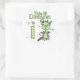 Fantasy theme cute little green dragon with purple wings and text 'This Lil Dragon is 1' on baby's first birthday sticker. Customisable background colour.