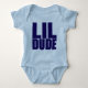 LIL DUDE in large blue letters is great as a matching Father & Son set of BIG DUGE and LIL DUDE. This combo makes great new Dad/Son gift, Father's Day gift, Christmas gifts & more. Get matching apparel for boys & their Dads! Available in baby sizes.