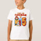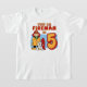Cute firefighter fifth birthday design features a cute fireman, spotted dog and fire hydrant with text "This lil fireman is 5".