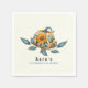 Watercolor orange flowers and blue and orange pumpkin. L'il pumpkin is on the way. Baby Shower cocktail napkin. Fall Pumpkin Baby Shower. Colourful.
