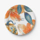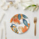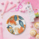 Watercolor blue foliage, orange flowers, and colourful pumpkin paper plate. L'il pumpkin on the way. Baby Shower paper plate. Fall Pumpkin Baby Shower. Colourful.