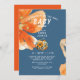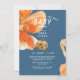Watercolor orange flowers and blue and orange pumpkin. L'il pumpkin on the way. Baby Shower Invitation. Neutral.