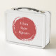 This is a standard metal lunchbox that appears to work just fine. We designed this box ourselves with an uploaded photo and custom text on the front and back. It looks absolutely beautiful except the front of the lunchbox is not centered like it shows in the photo. The print borders don't align with the inset flat part of the box where the preview photo online showed it perfectly centered in there. The back looks nice and centered though.