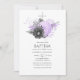 Pastel lilac and charcoal grey watercolor floral baptism invitations designed to be quickly and easily customised to your event specifics.