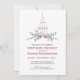 Invite guests to your baby's Annaprashan with these elegant and delicate party invitation featuring an empty bird cage decorated with pink flowers and leaves. Cards reverse to solid Pink colour with white polka dots pattern.