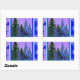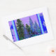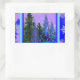 LILAC-BLUE FOREST LANDSCAPE & SNOWFLAKES ART RECTANGULAR STICKER