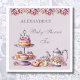 Celebrate the mum-to-be with this elegant, personalised Lilac Tea Baby Shower paper napkin, perfect for a tea baby shower party, lunch or picnic. Adorned with delicate blush pink and lilac flowers, this napkin features a charming teapot, cake stand holding an assortment of delicious tea cakes, alongside a tea cup and saucer decorated with intricate floral patterns. Set against a soft dusty lilac background, the design exudes a feminine and sophisticated touch. The words “Baby Shower Tea” are beautifully scripted, adding a special touch to this graceful and festive napkin. Perfect for your Tea Party Baby Shower.