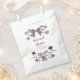 Boho bow theme bridal shower favour bag featuring hand drawn illustration of lilac ribbon and flowers.