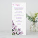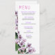A gorgeous tea length menu of watercolor flowers from our "Lilac Branches" collection. Use the orange "Customise It" button above to insert your own text. There are several matching products available for this collection: wedding and reception invitations, dinner menus, bridal shower invites, RSVP cards, stickers, photo thank you cards, magnet favours and more. Want a different colour or a new custom design? Available in white with lilac and chalkboard with lilac.