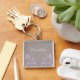 Sweet and dainty Butterfly Floral Premium Keychain with a muted dusty grey background and light purple butterflies and floral vine embellishments. This elegant floral key fob is a lovely choice for keeping your keys handy with girly flair. Easy to customise, simply add the personalised text of your choosing in the text fields provided. Click on the "Customise It" button to find additional personalisation options.